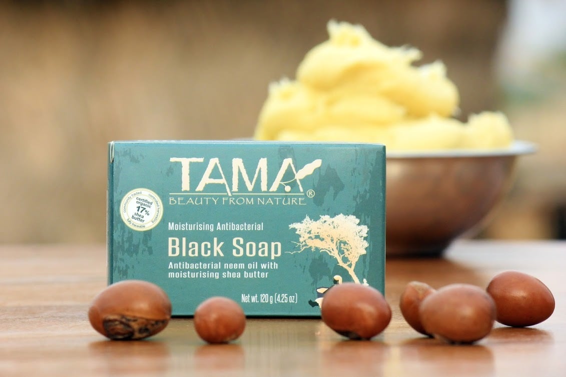 この『アフリカンブラックソープ』は、アフリカで古くから伝わる秘伝のレシピから作られた石鹸。シアバター・パーム核油・ココナッツオイル・パームオイル・カカオポッド・バナナの皮の灰・ハチミツ・精製水・アロエベラなど、肌に良いと言われている自然素材を原料にしています。